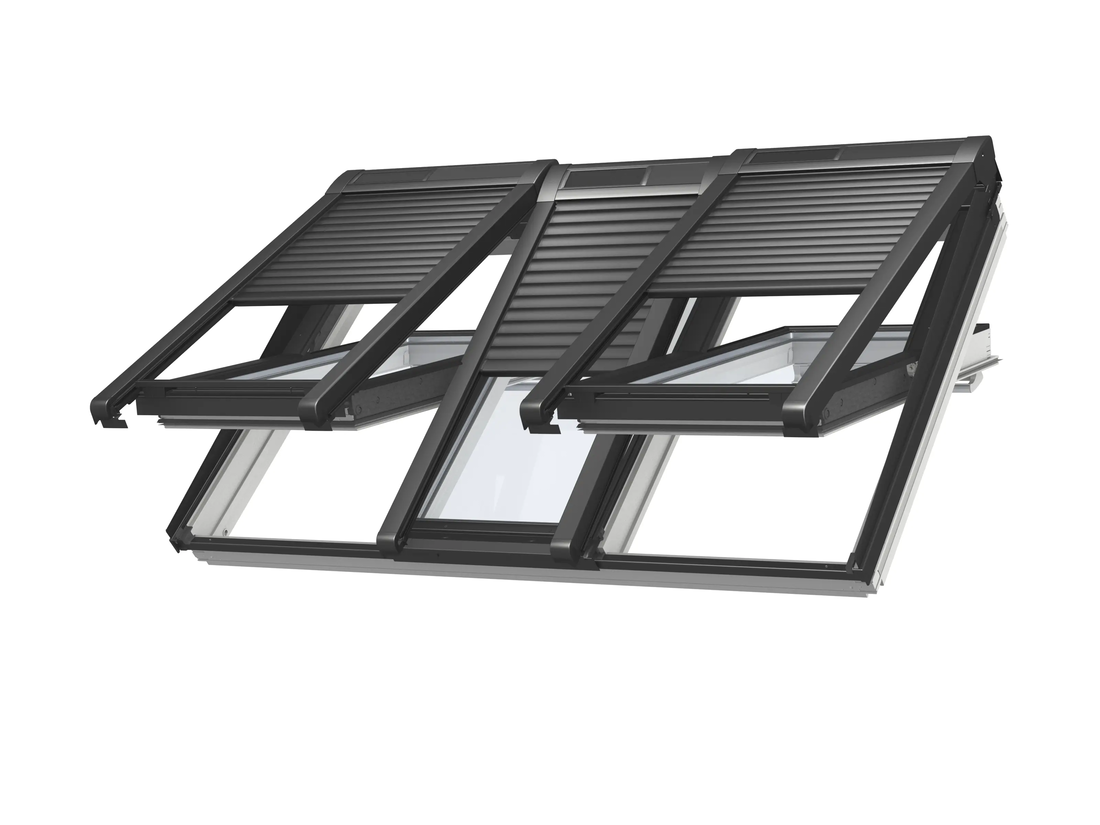 Een dakvenster dat ver ver naar buiten opendraait, zodat je vlot naar buiten kunt klimmen zonder hinder van het raam zelf. - Speciale dakuitstap / daktoegangsraam